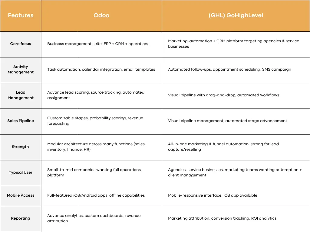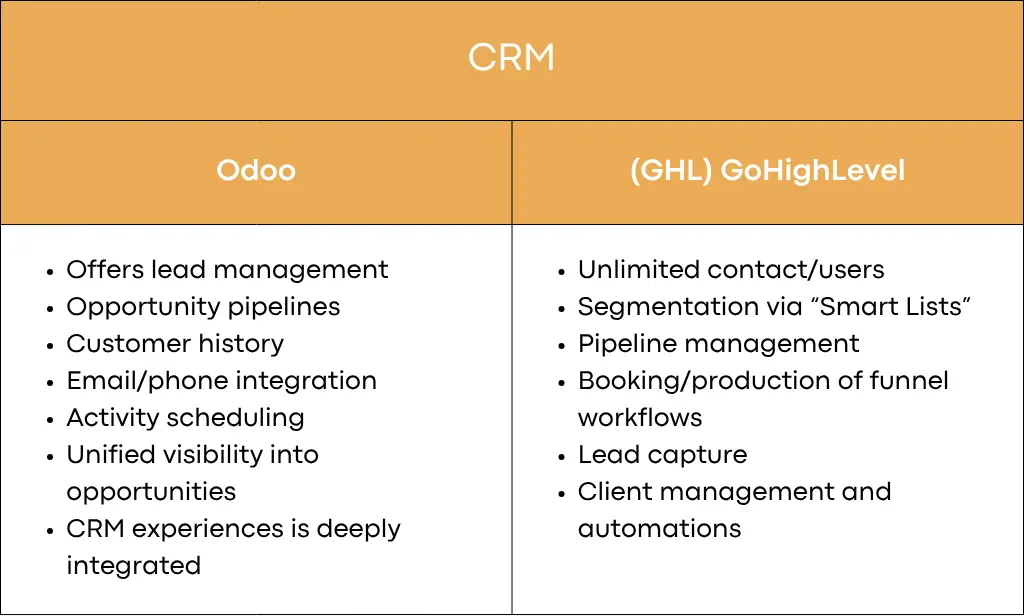 Comparison between Odoo and GHL (GoHighLevel)