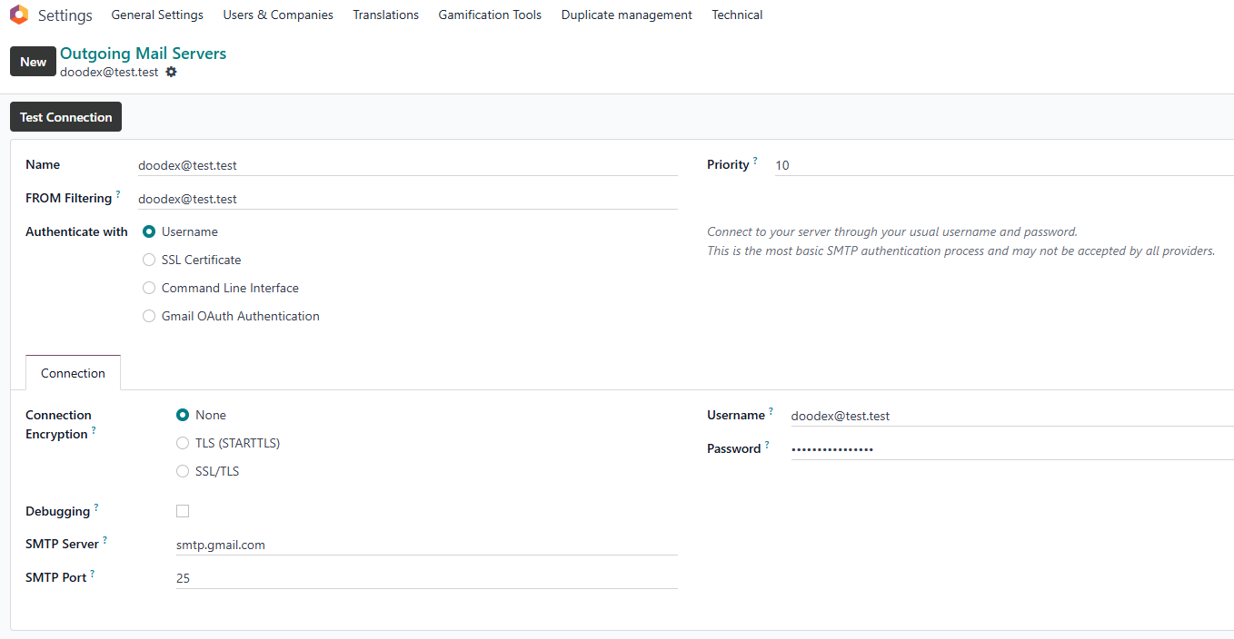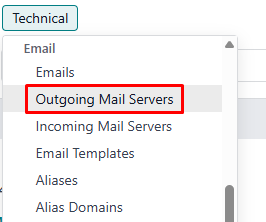 - Go to Settings → Technical → Email → Outgoing Mail Servers.