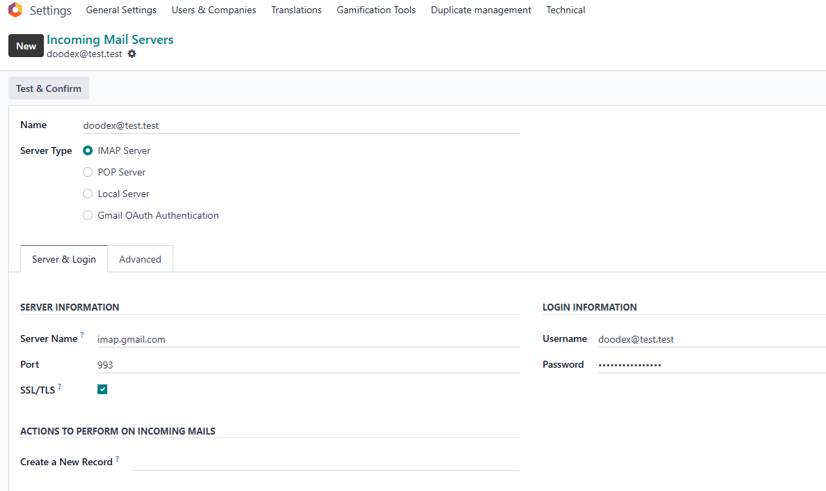 - Go to Settings → Technical → Email → Incoming Mail Servers.