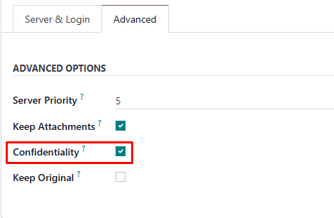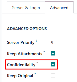 - If Confidentially is enabled, only emails that you manually label in Gmail as “A enregistrer dans Odoo” will be fetched into Odoo.