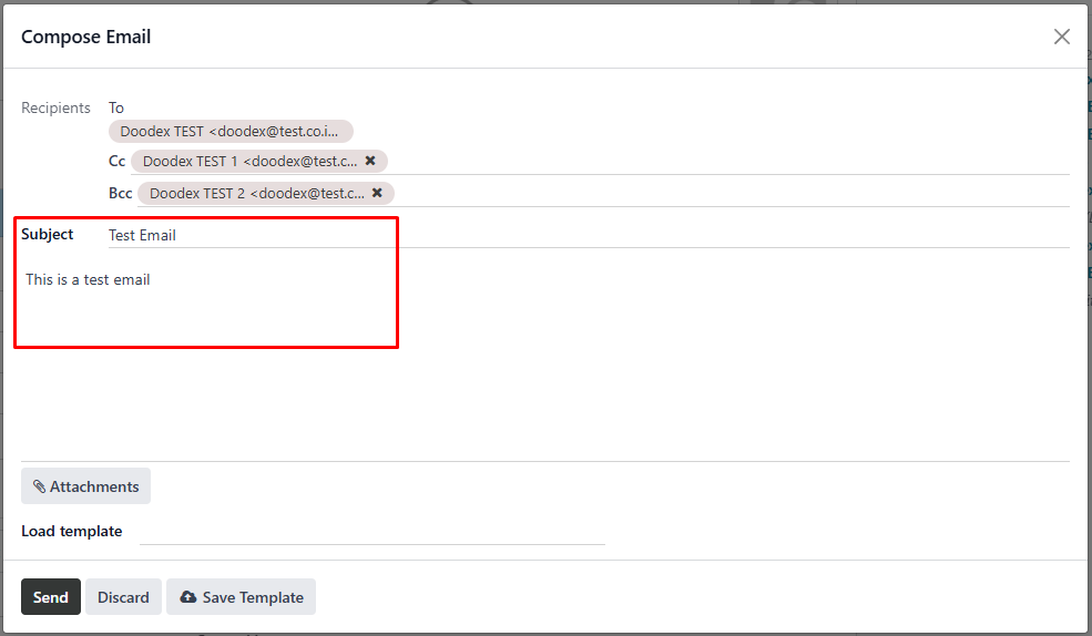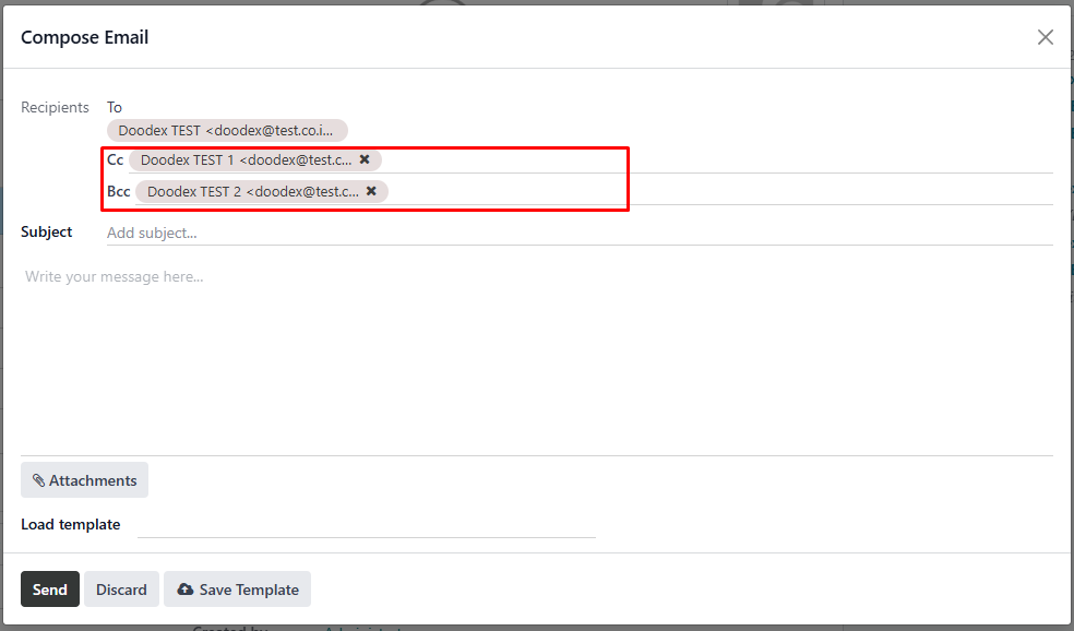 💡 The email is sent to all recipients, and CC/BCC are recorded in Odoo.