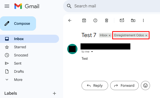 - Gmail message gets labeled → “A enregistrer dans Odoo”