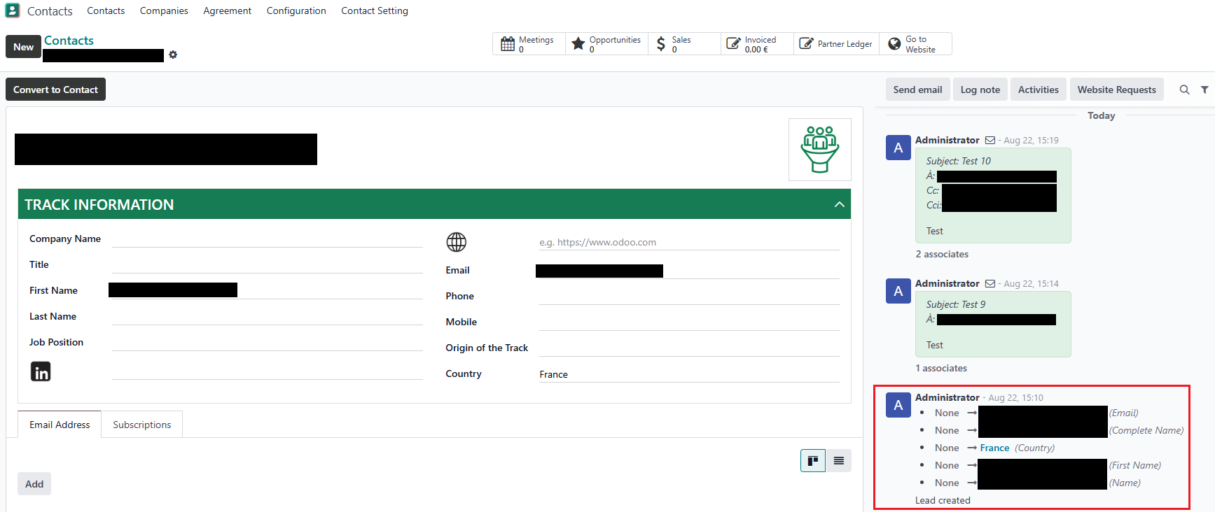 - Automatic Lead Creation: When an email is received from an address not yet in Odoo, a new Lead is automatically created.