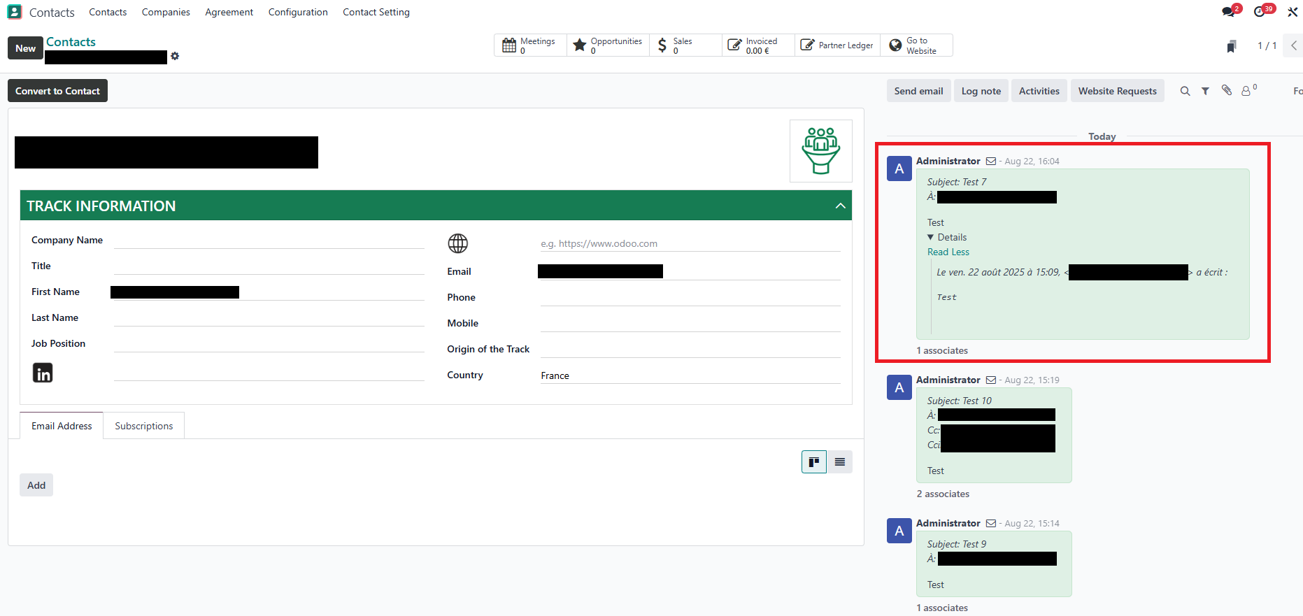 - First-time emails from potential customers are recorded without requiring a prior Odoo email.