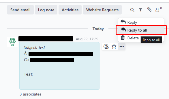 - If the email has CC or BCC, you can Reply All directly from the Odoo Chatter, keeping the conversation complete.