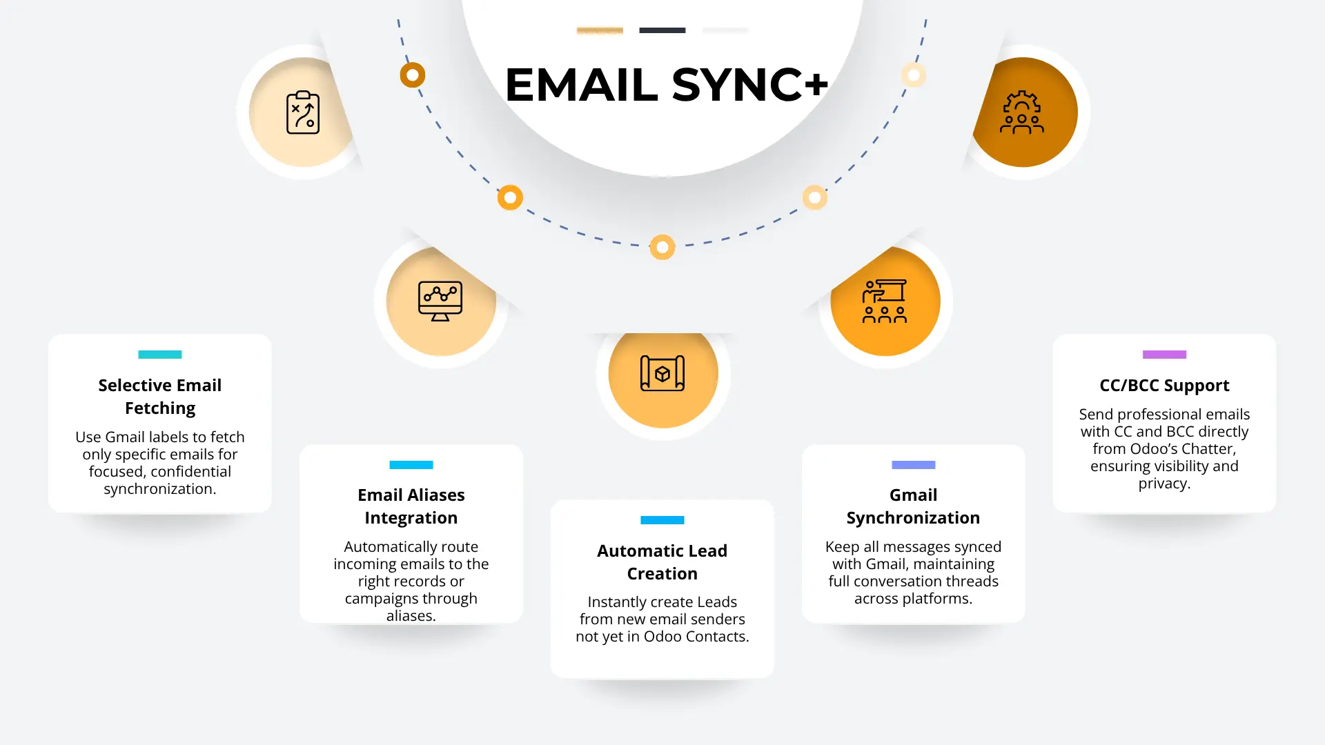 Syncs all emails with Odoo and auto-creates leads from new contacts. |
